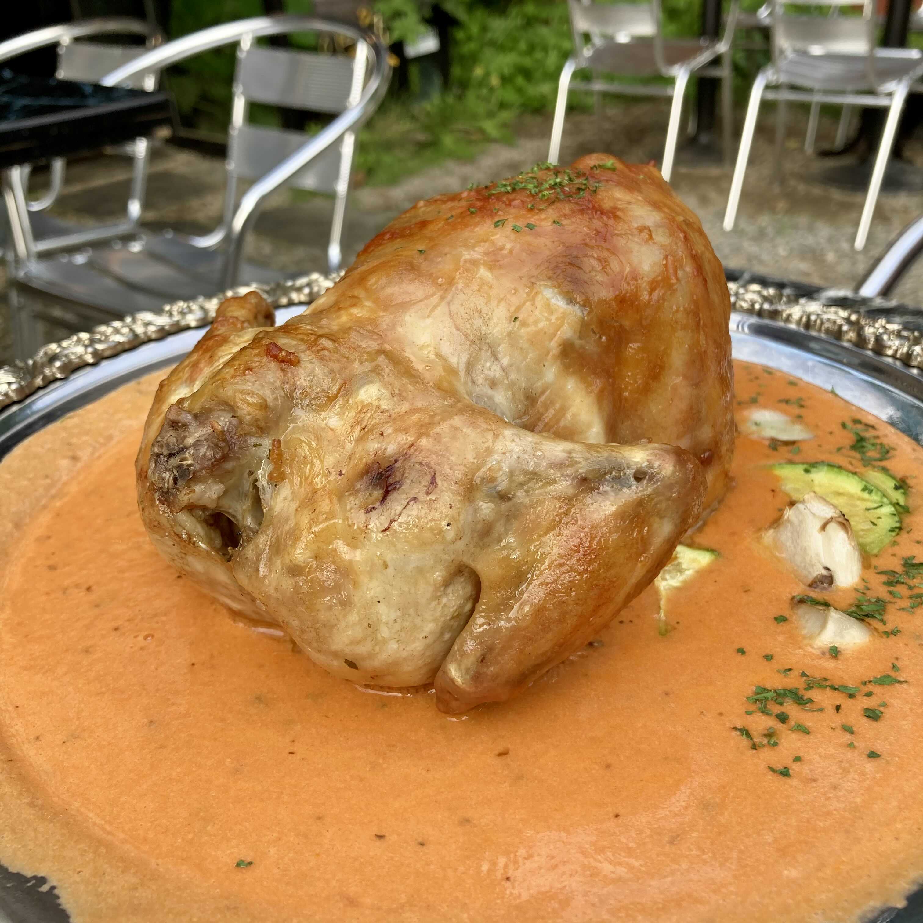 넓은 쟁반에 통닭 한 마리가 덜렁~ 올라간 게