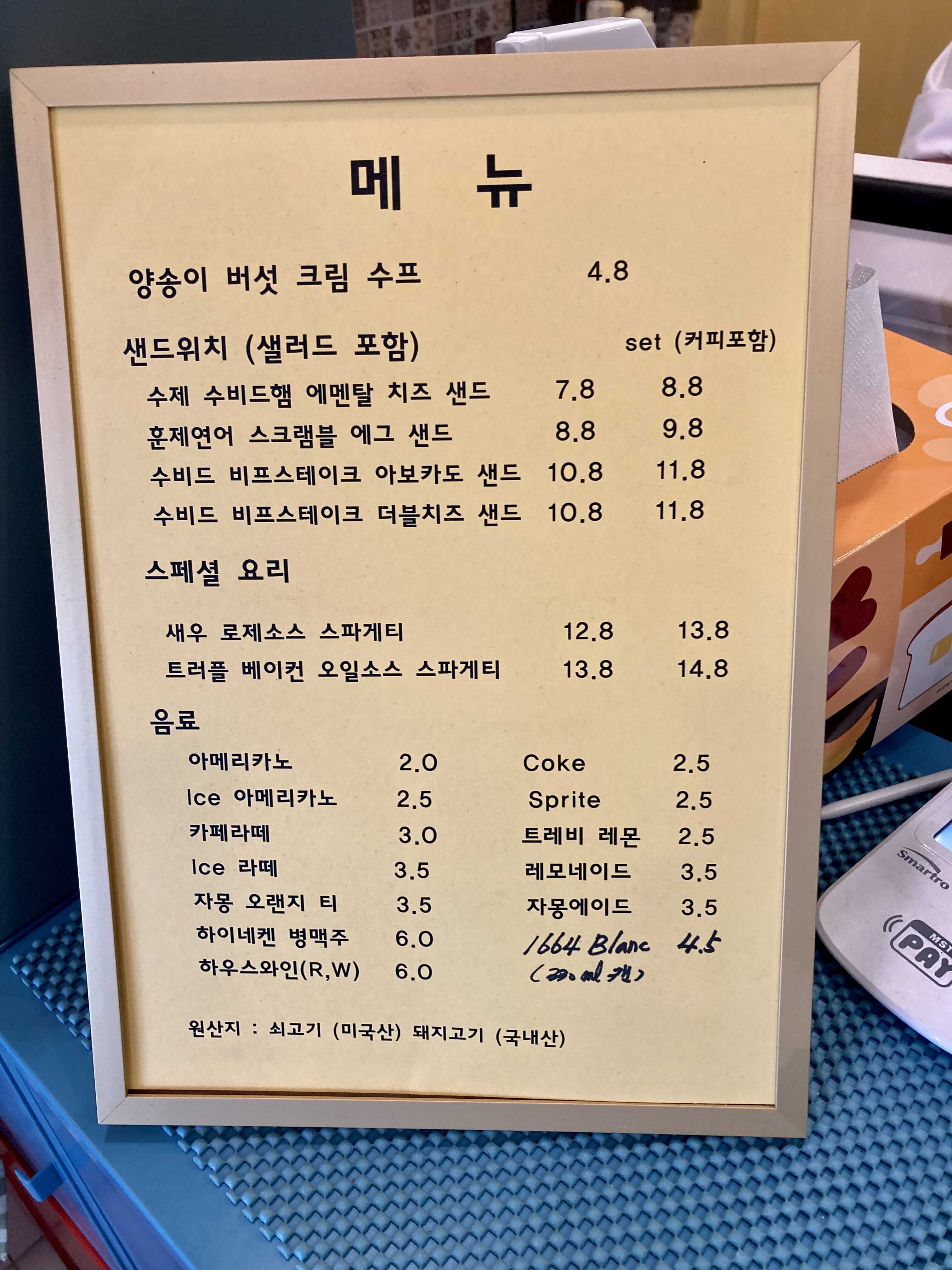 메뉴는 수프, 샌드위치, 파스타 종류가 있다.