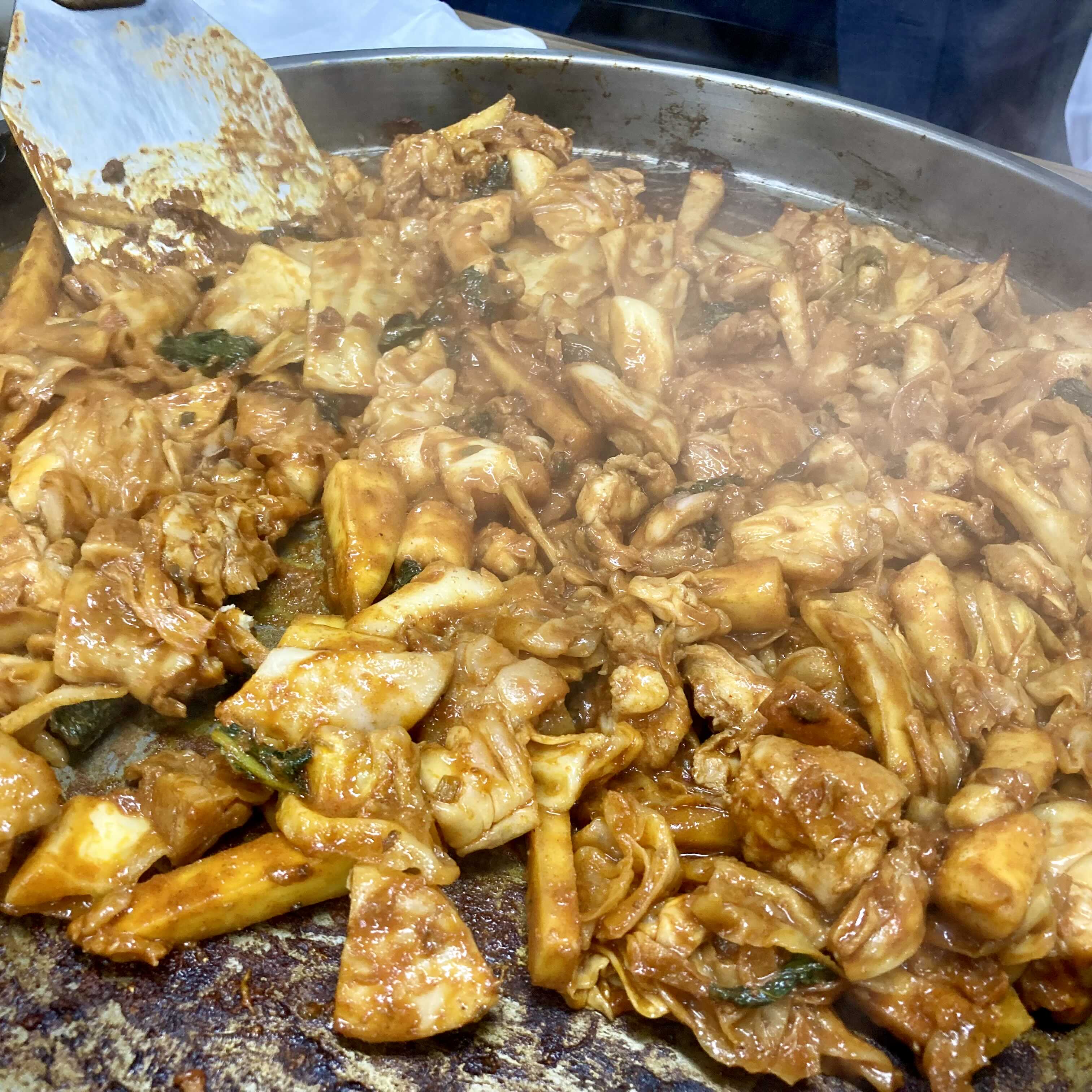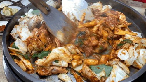 사브작사브작 볶아져 가는 철판 닭갈비.