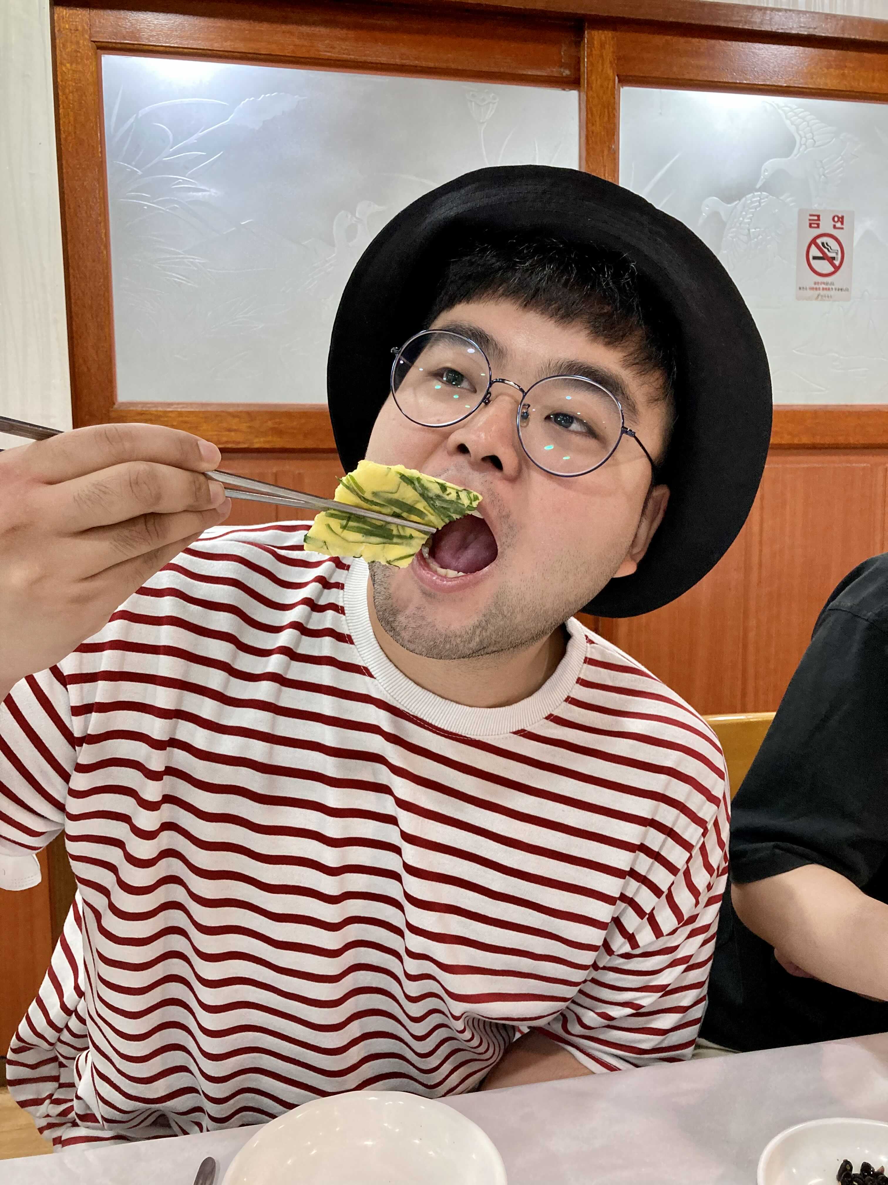 부침개를 맛나게 먹는 친구의 모습. jpg
