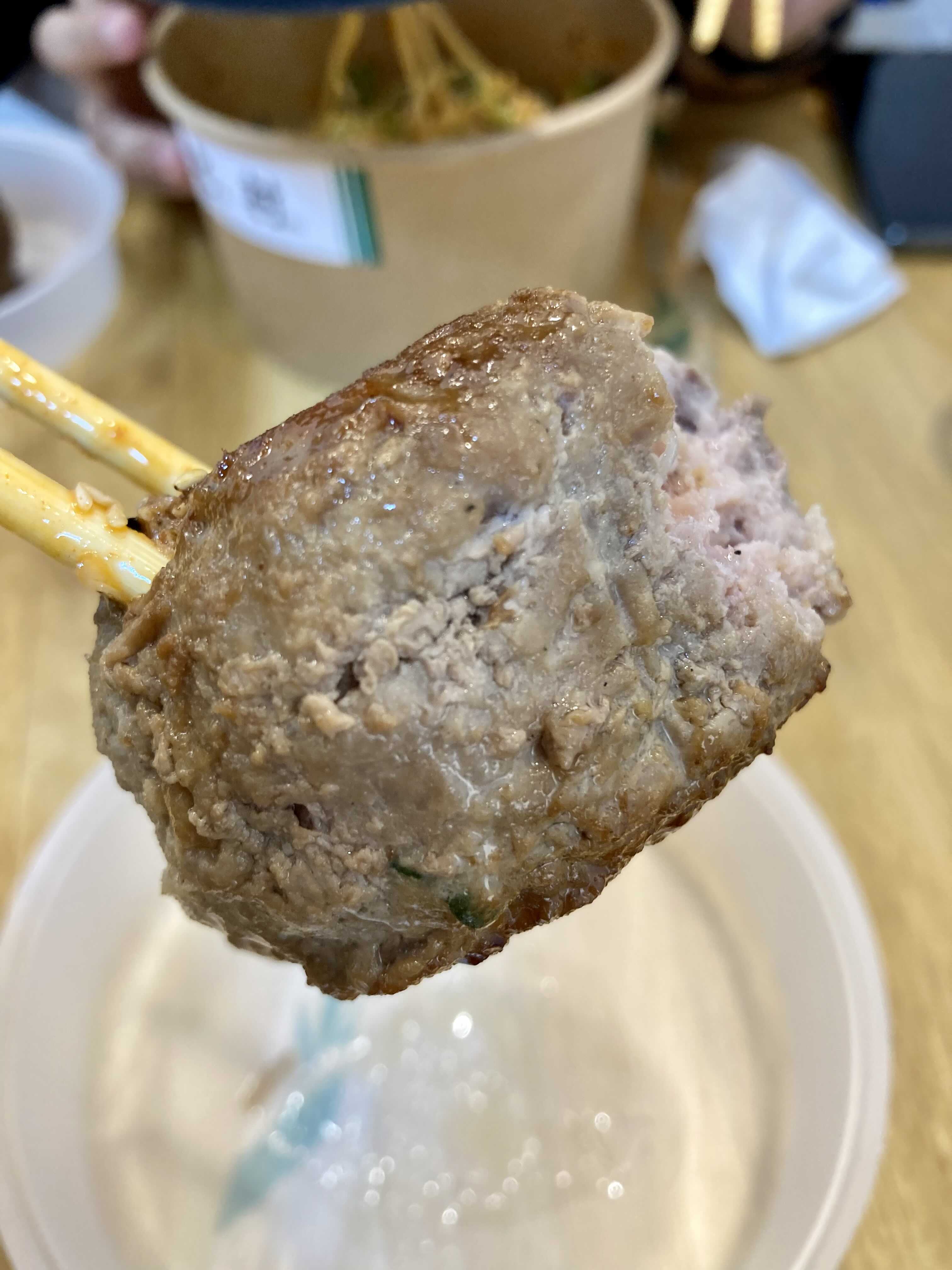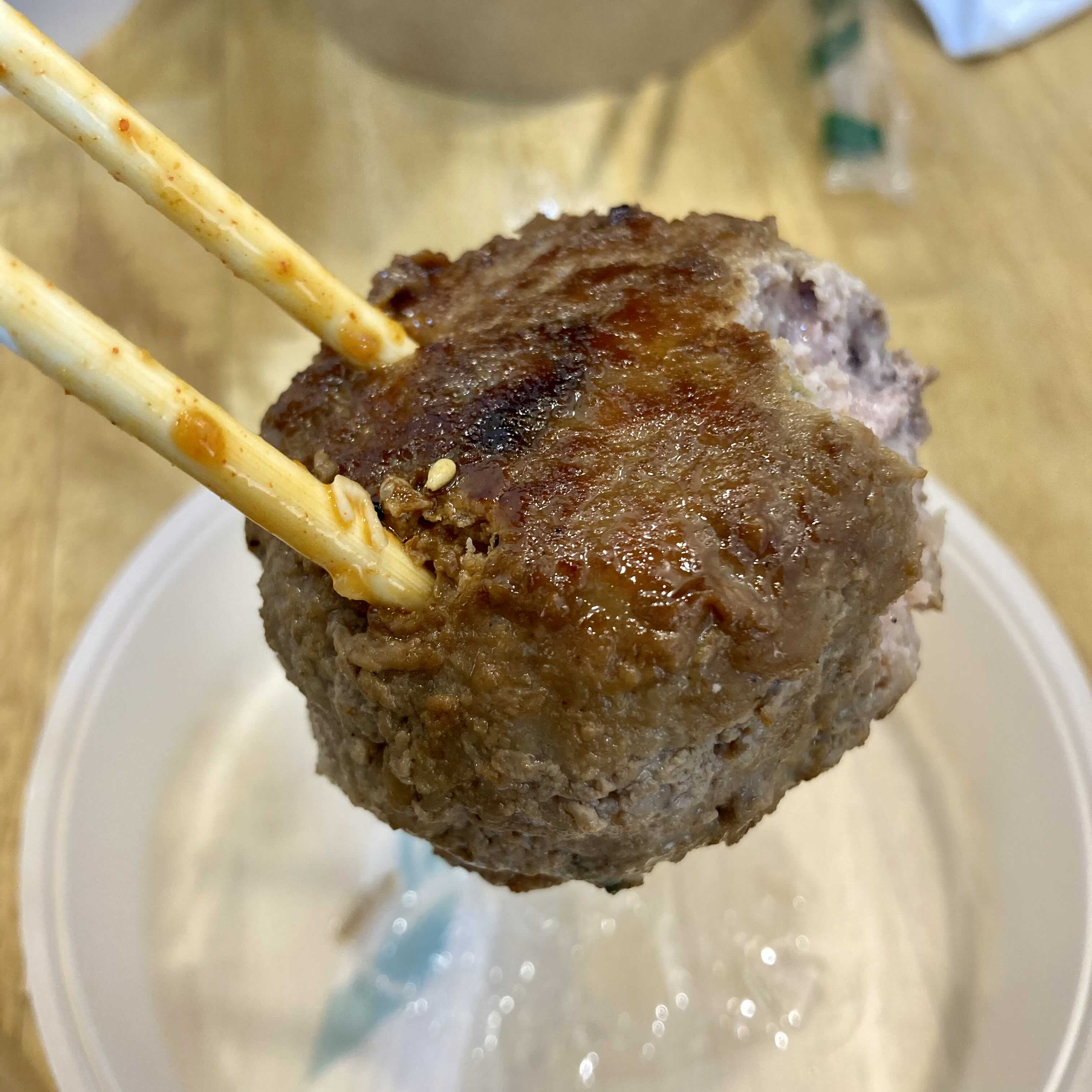 쫄면이 담긴 컵 위에 떡갈비 하나를 올려서 나온다.