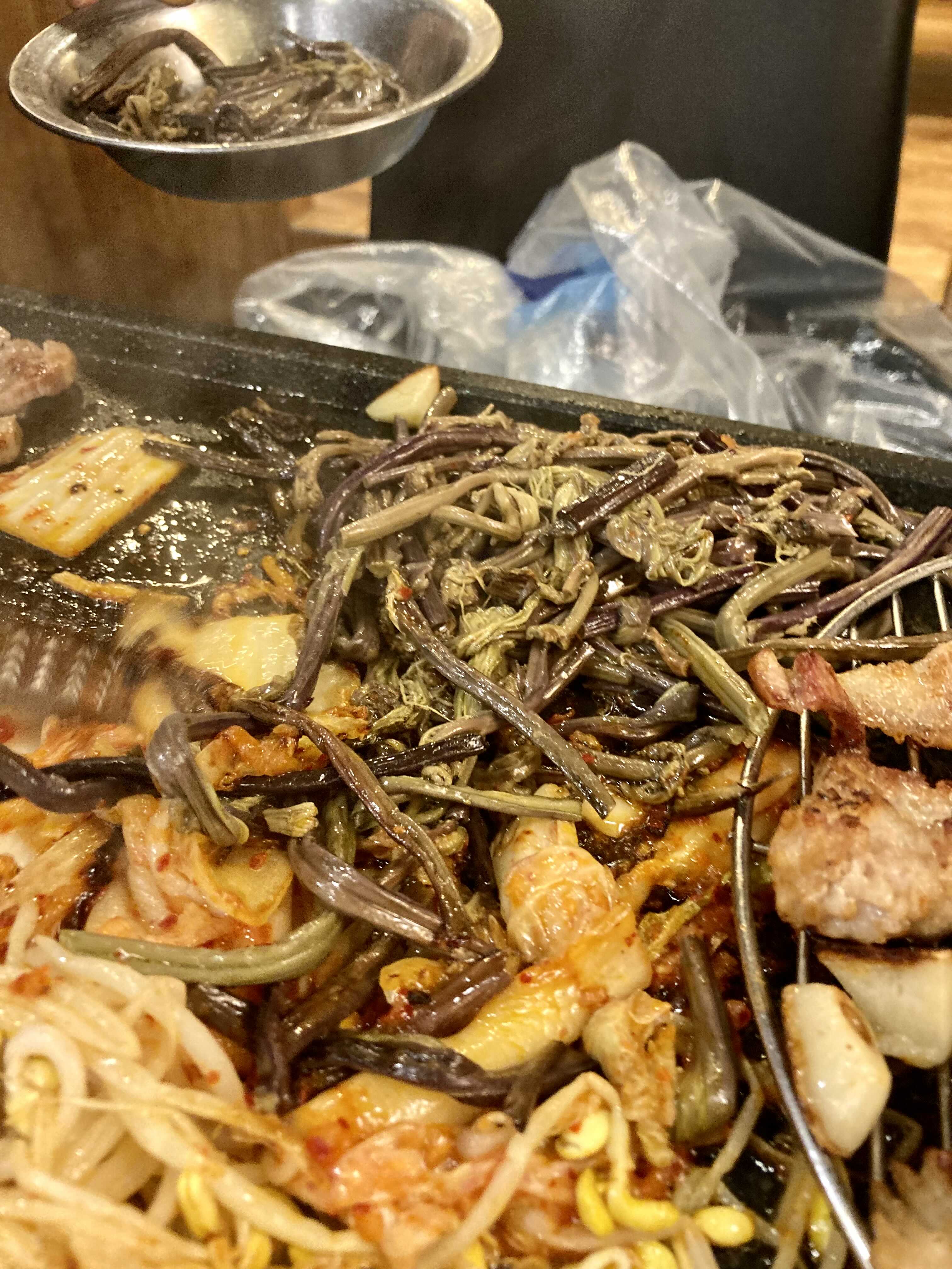 고사리와 김치와 양파와 콩나물과 치즈까지