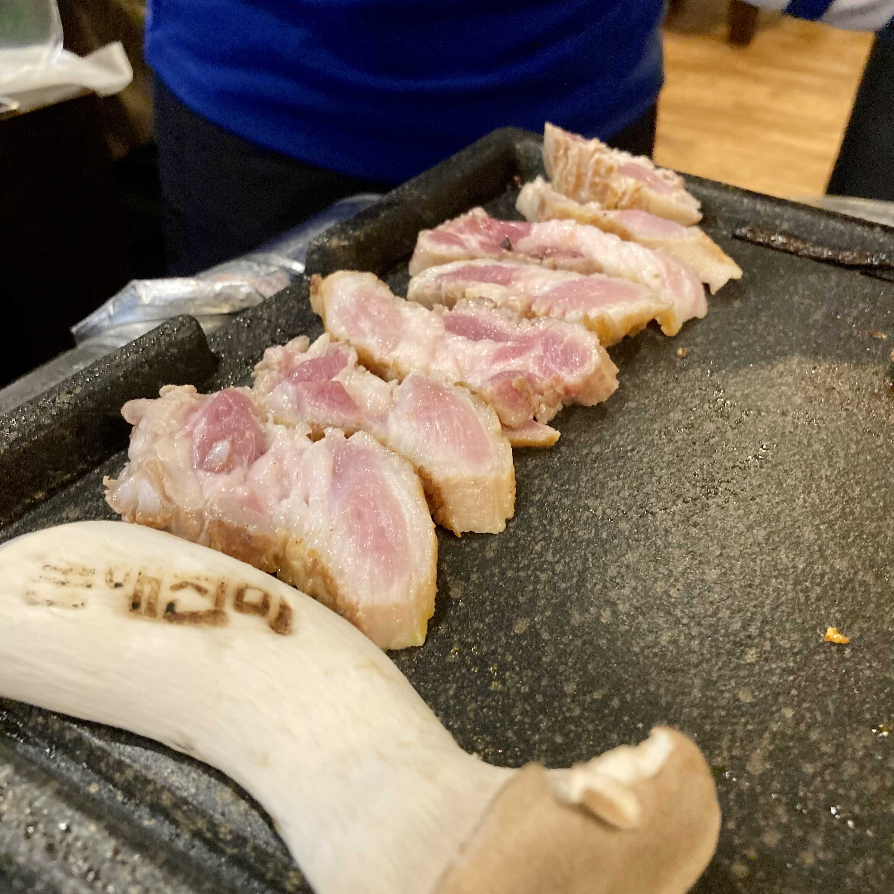 고기에 칼집을 내어서 꽃삼겹인 것 같았다.