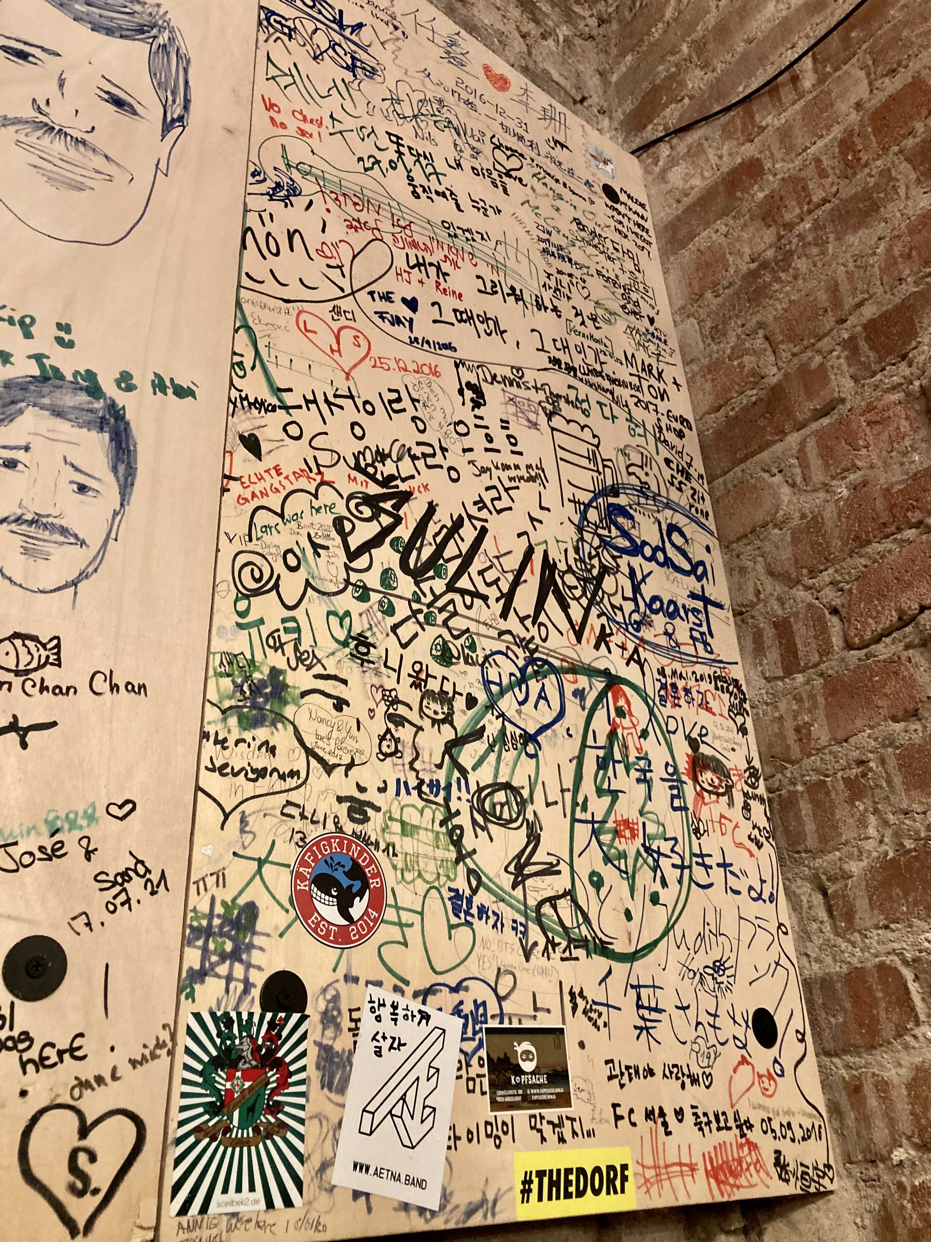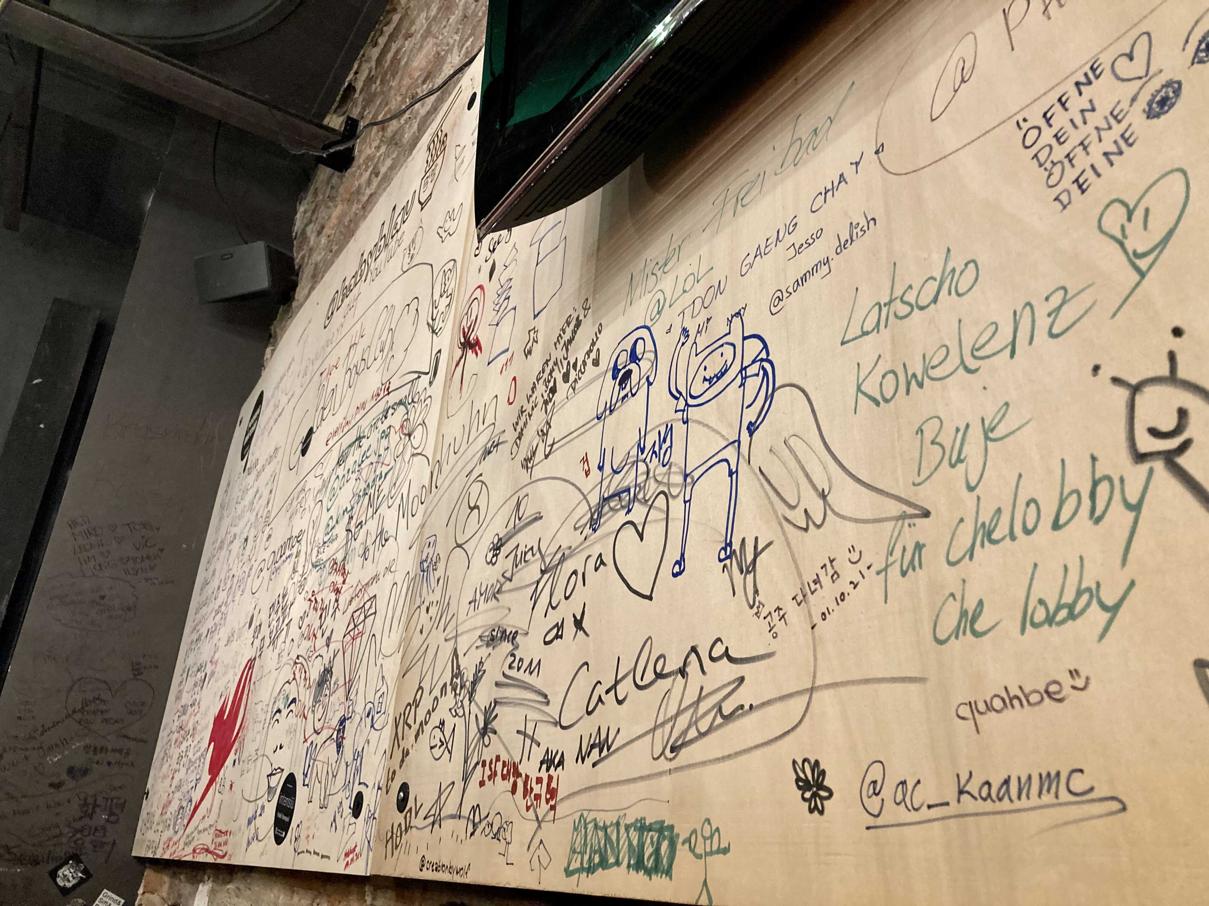 가게 내부와 테이블의 낙서부터