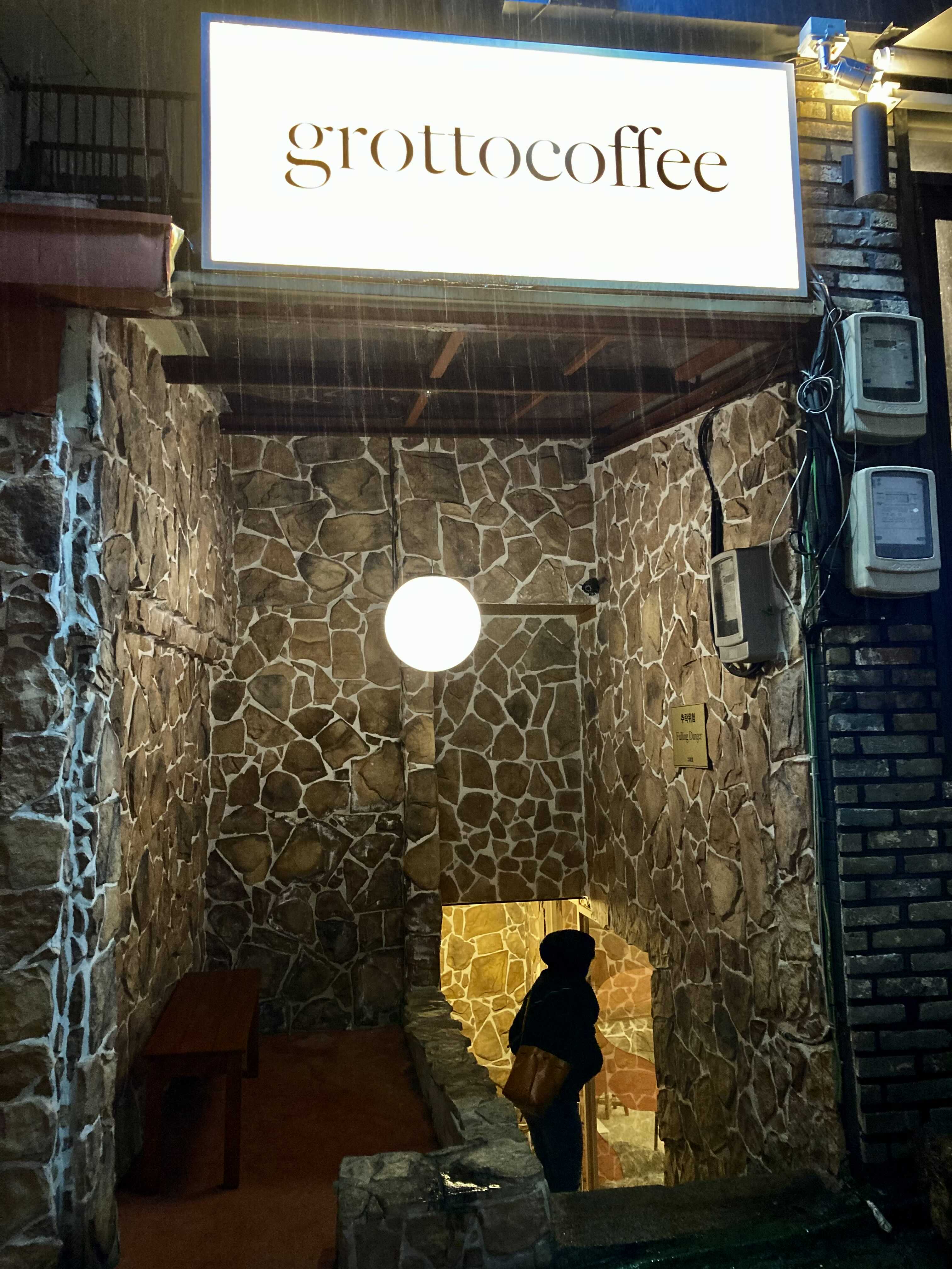 - 카페는 지하에 있다. 지하로 들어가는 계단이 가파르다. (물론 계단도 돌로 되어있다)