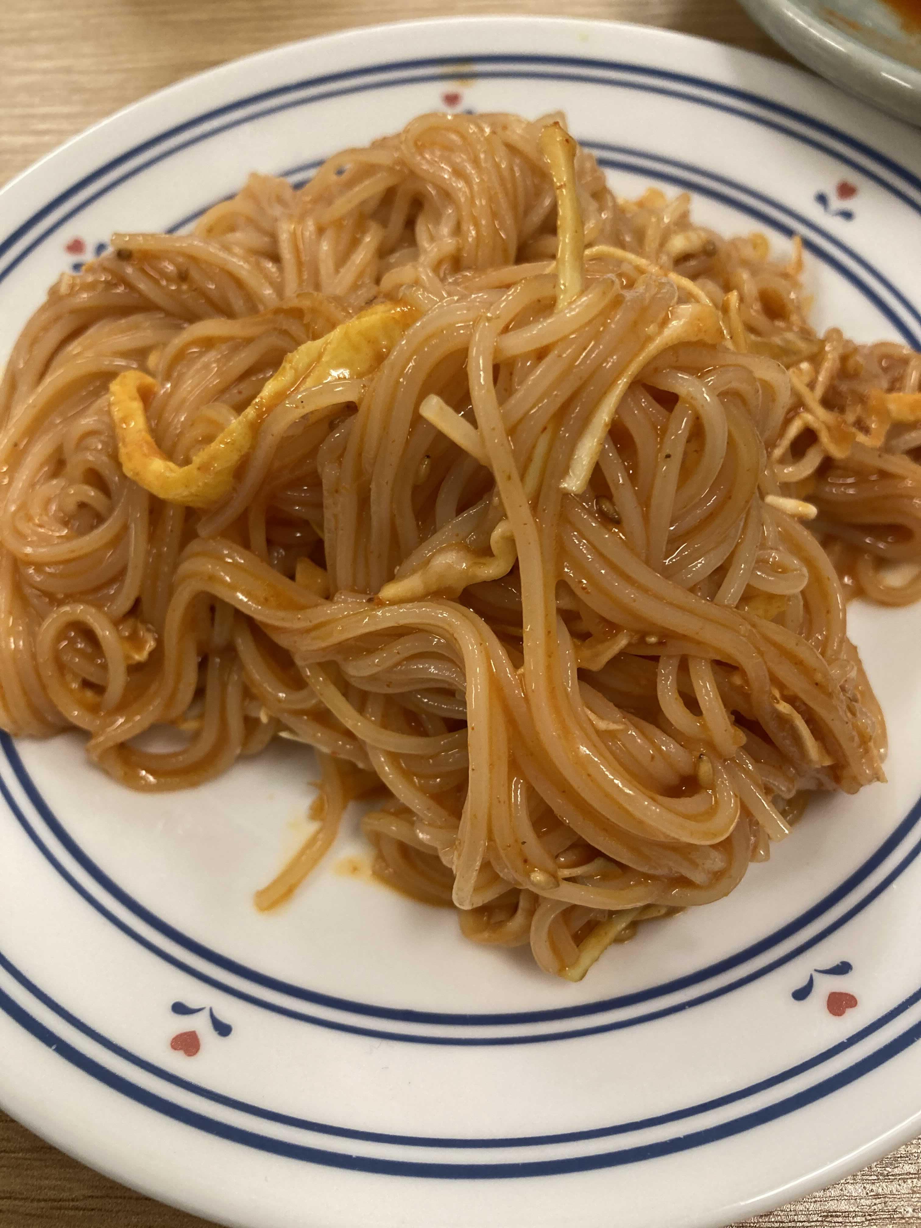 - 고기를 먹어줬으면 역시 탄수화물로 마무리 해야지. 비빔국수를 시켰다.