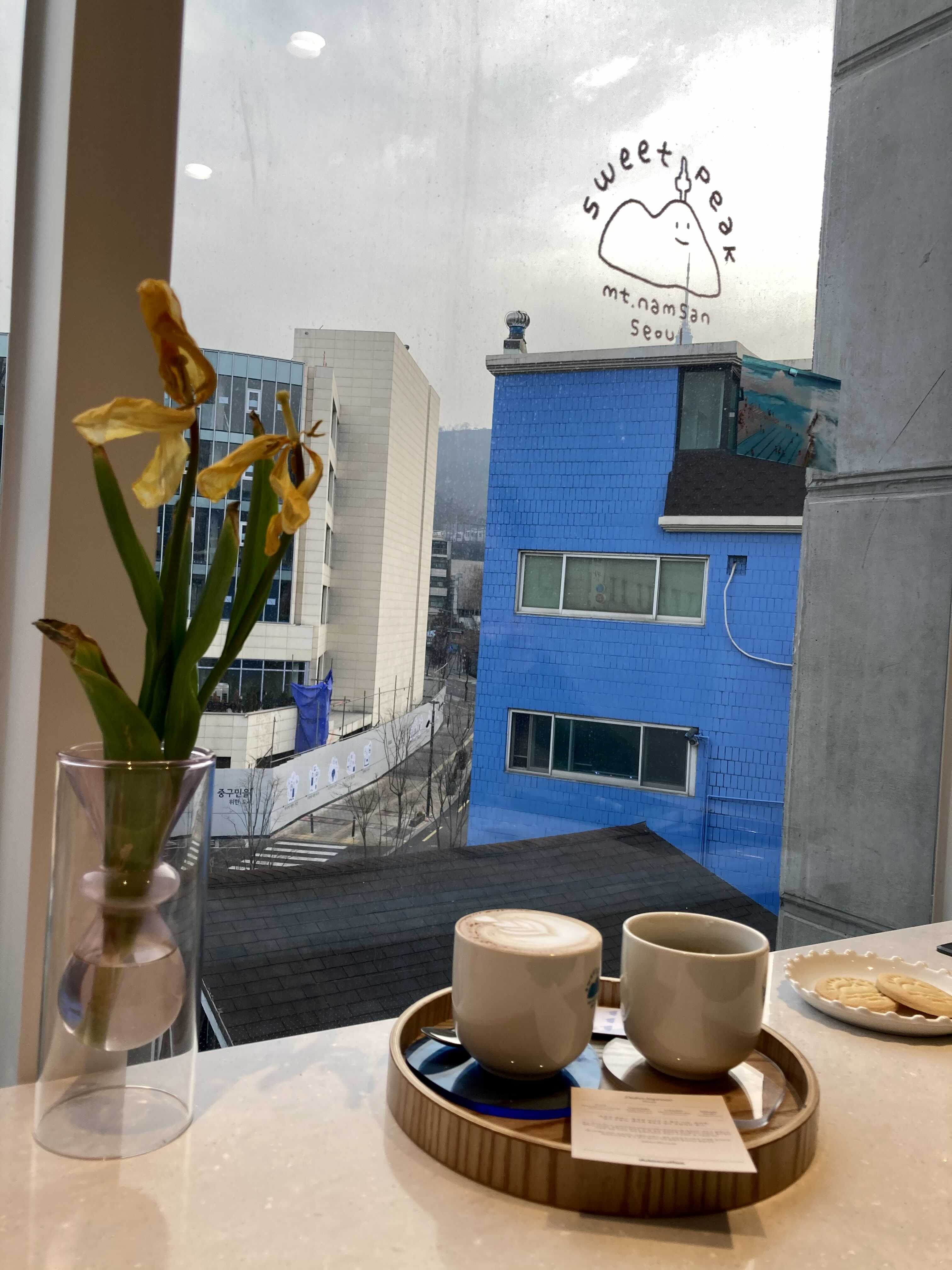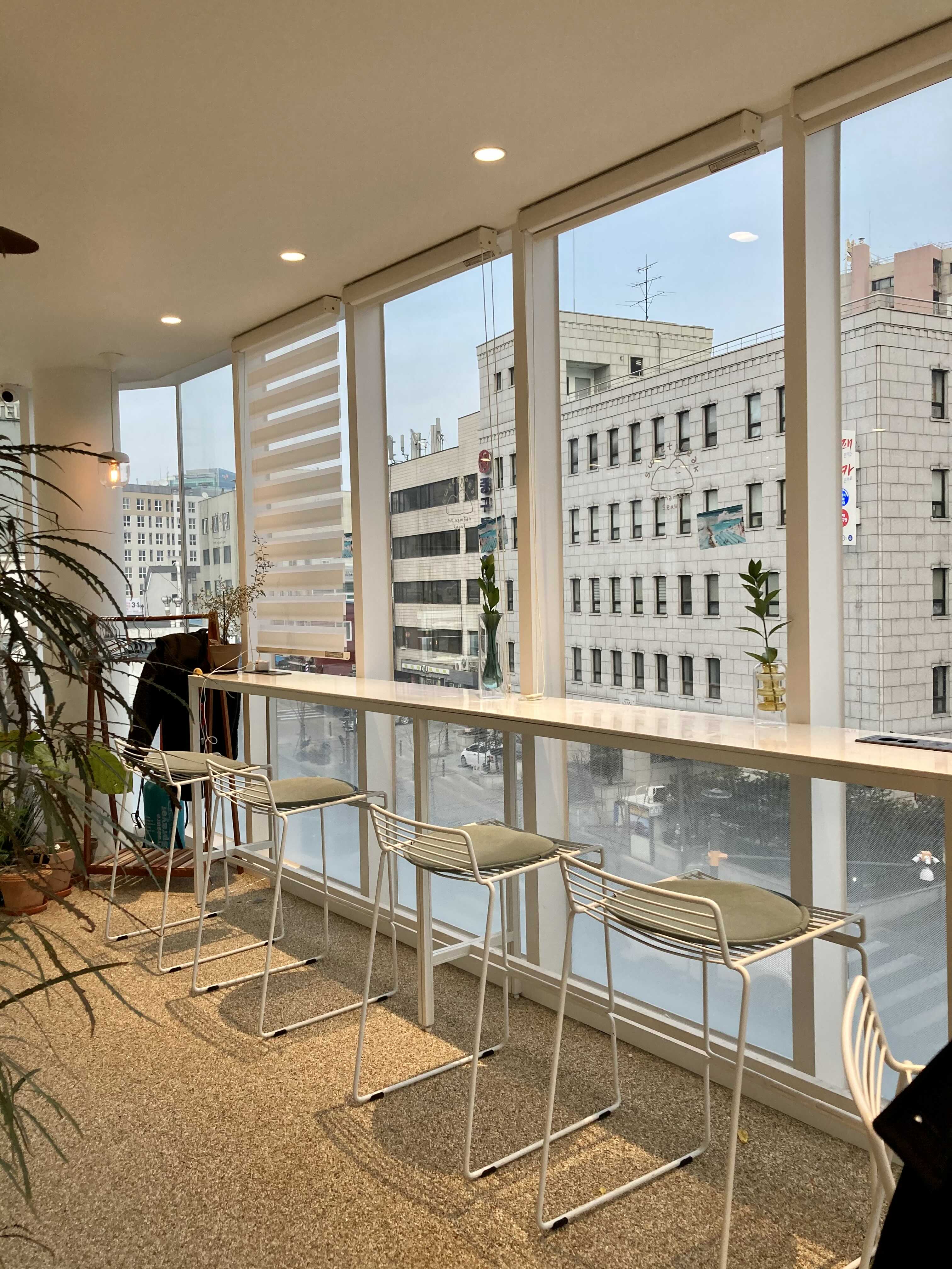 충무로역카페 스윗픽의 건물 자체가 높진 않아서 주변 건물들이 눈앞에 바로 보이긴 하지만 답답하진 않다.
