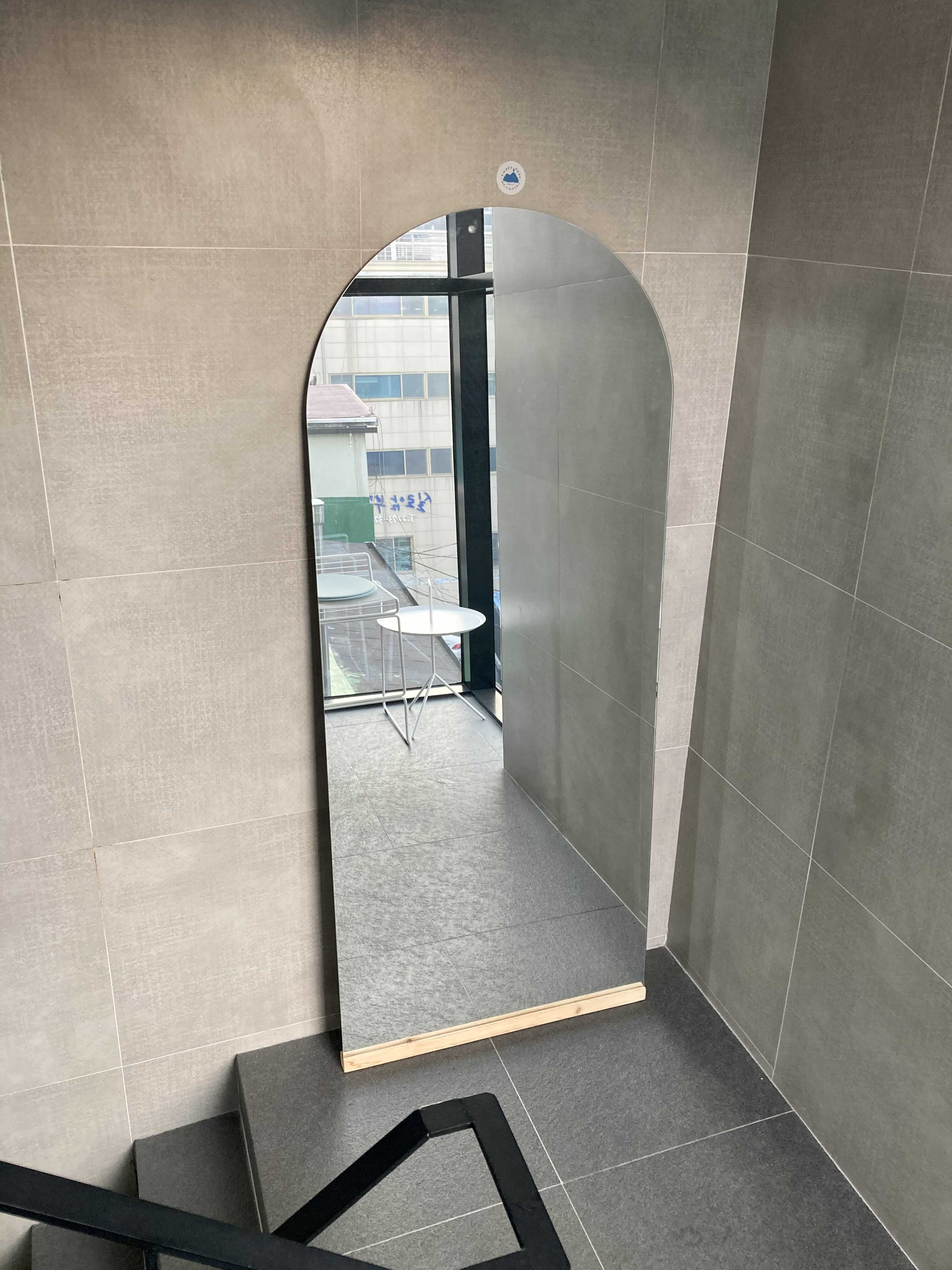 충무로역 카페 스윗픽의 루프탑으로 올라가는 계단 사이에는 거울이 있다. 그것도 아주 큰 전신거울.