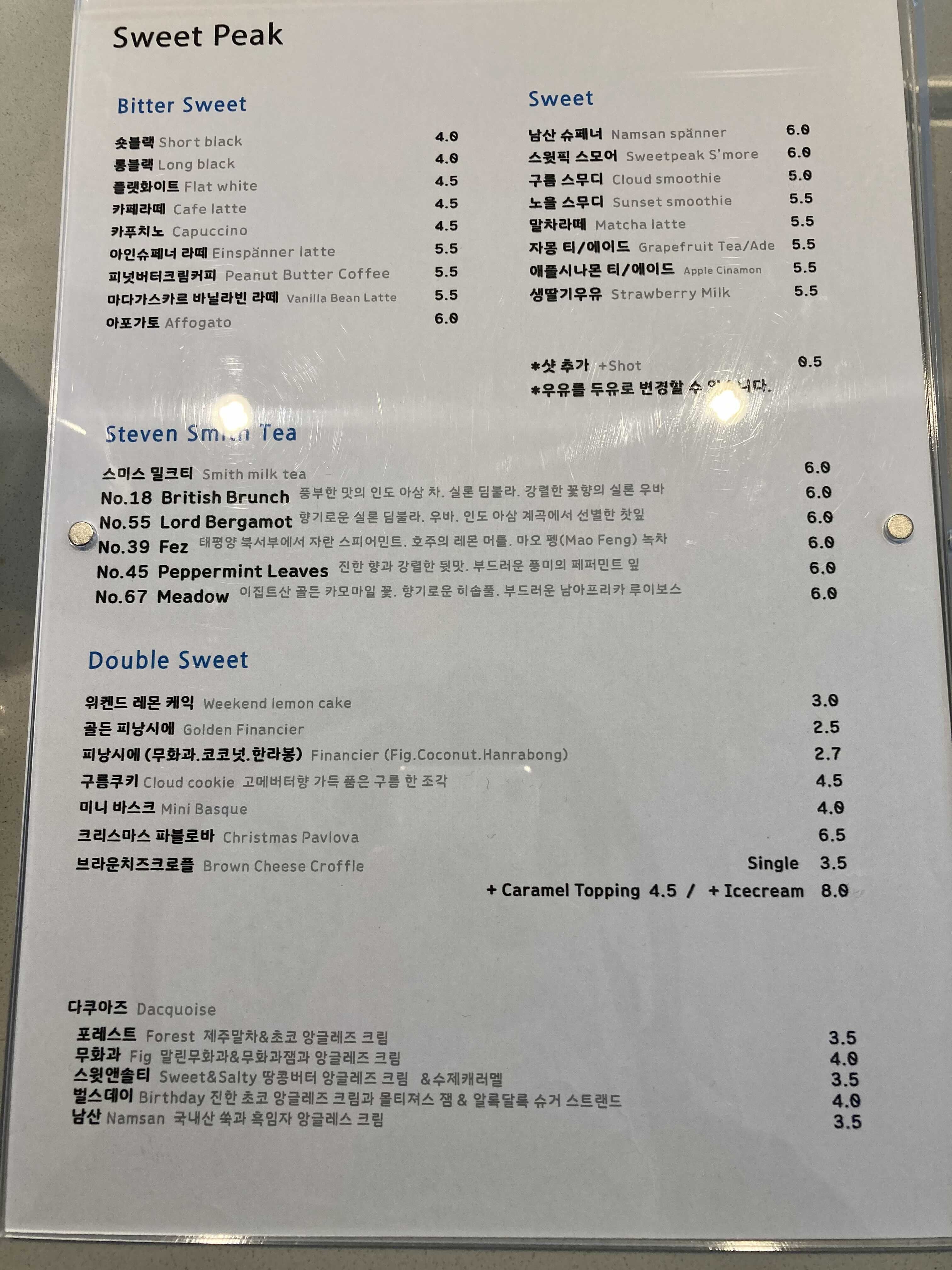 창가 테이블 쪽에 앉으면 (앞 건물에 좀 가려지긴 하지만) 남산타워가 빼꼼 보인다. 그리고 사소한 것들이지만 스윗픽에는 이모저모 눈여겨볼 만한 게 많다