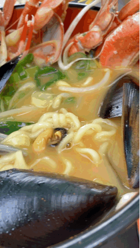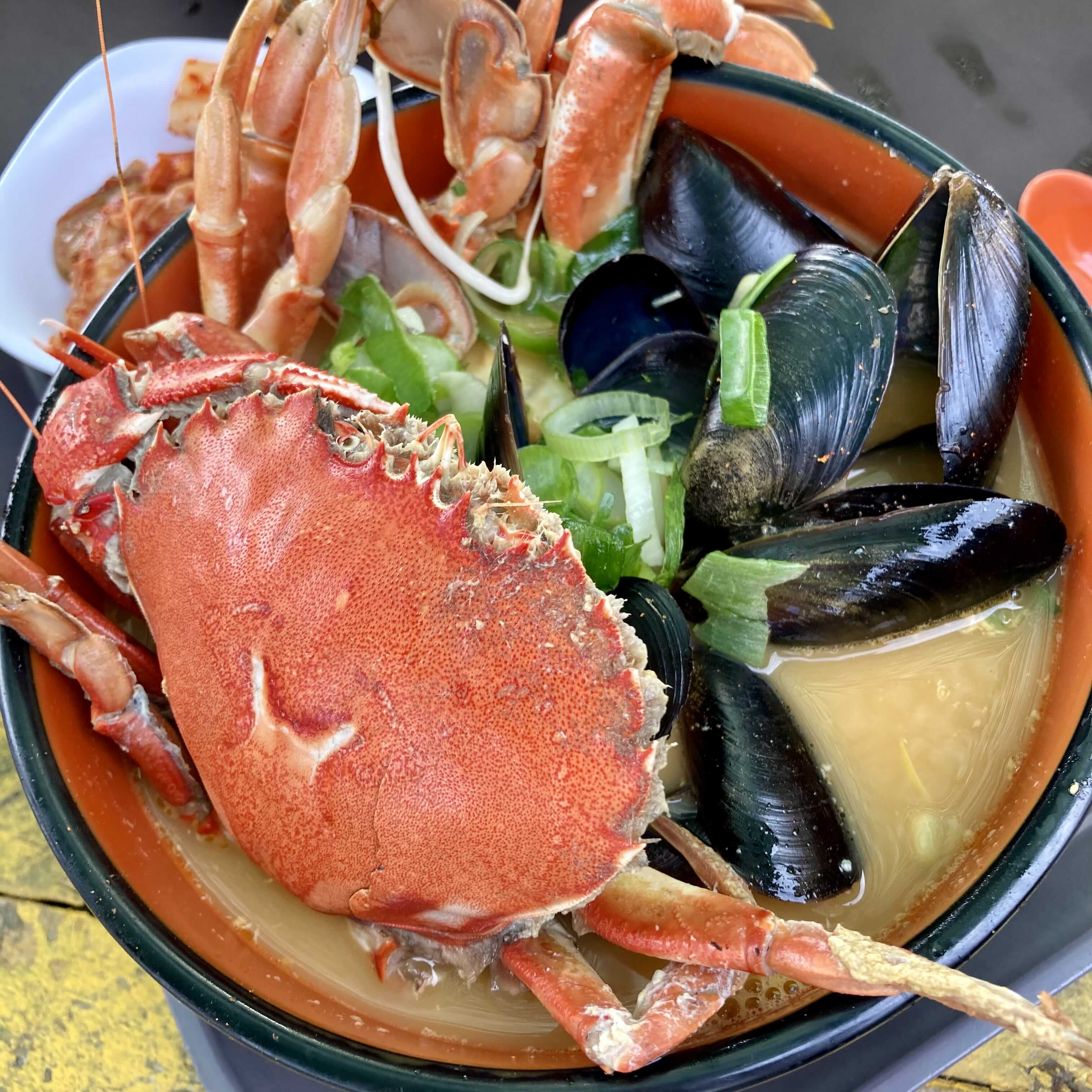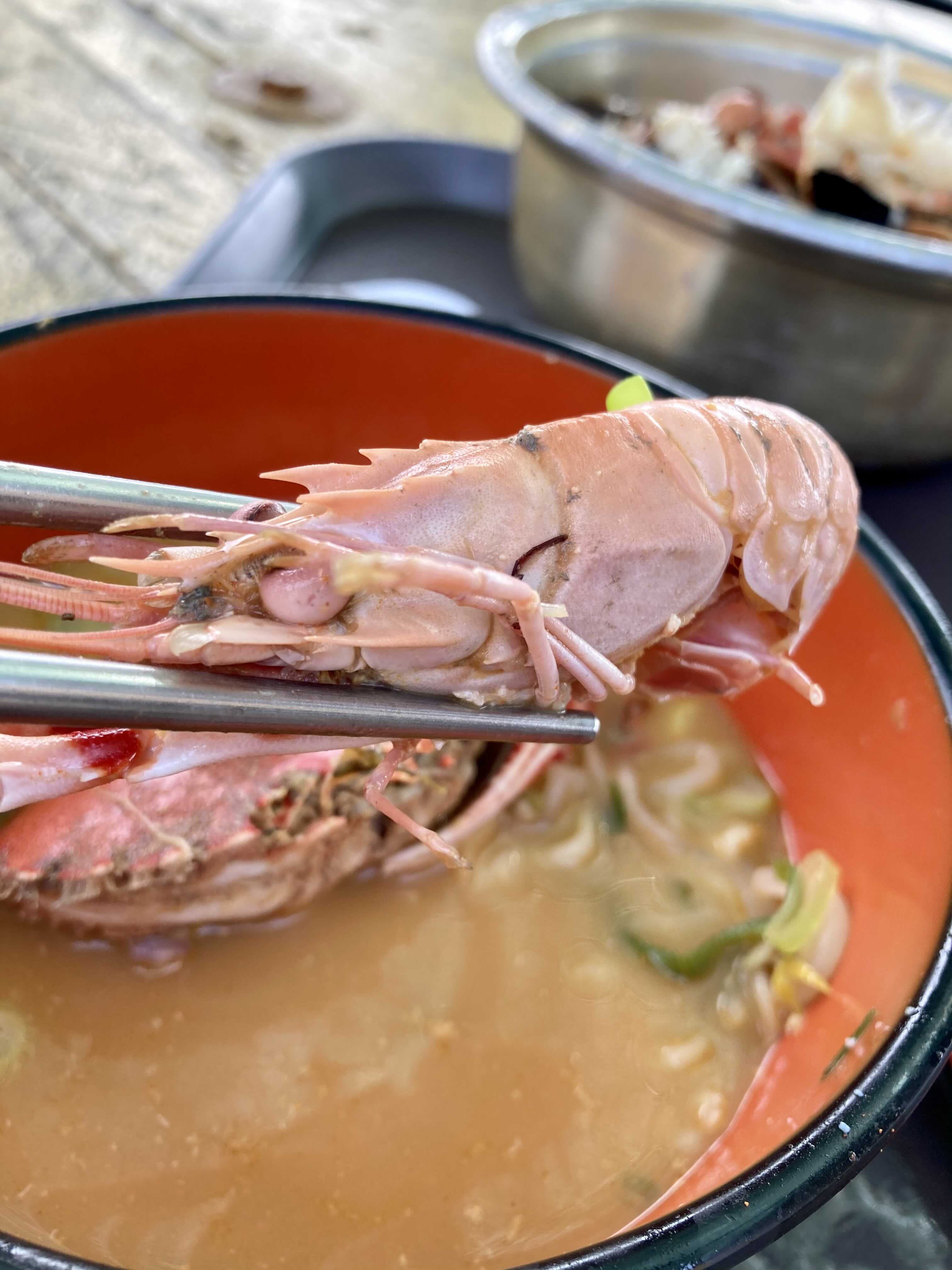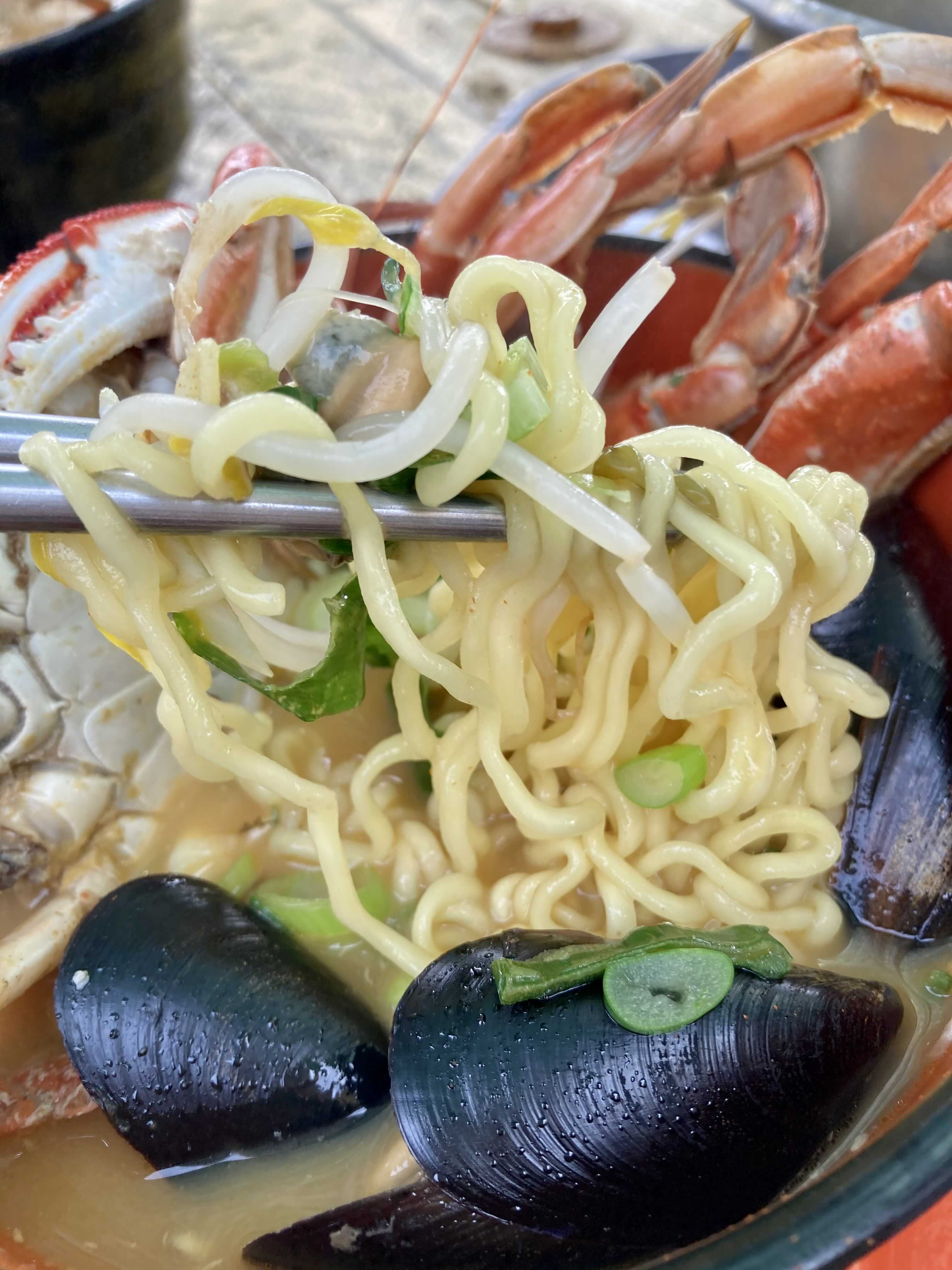 우선 비주얼이 너무 좋다. 저렇게 꽃게 한 마리를 그냥 담가버리면 해물 그 자체인 것이다. 그리고 함께 사이좋게 놓여있는 홍합. 비주얼은 찐 제주해물라면.