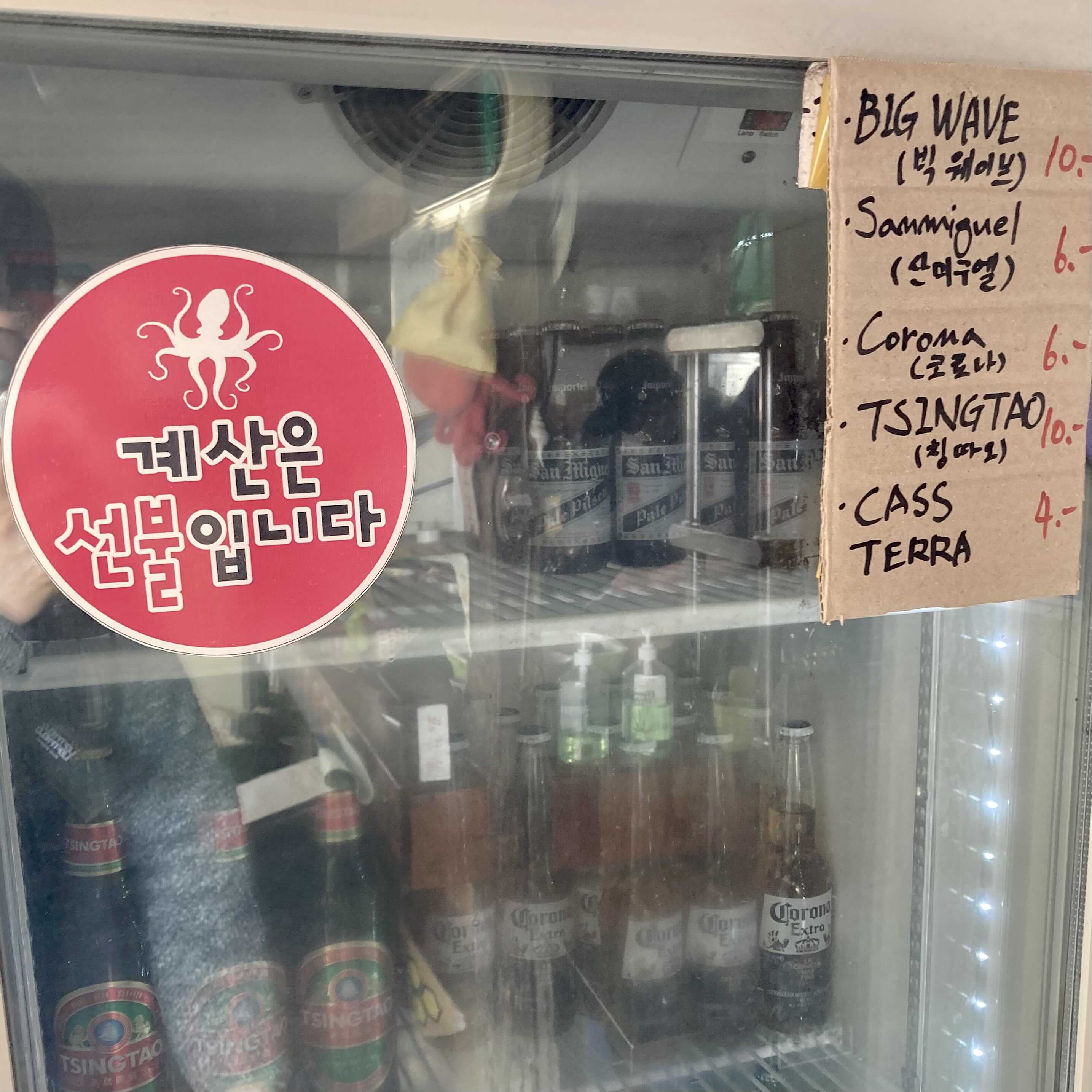 맥주도 판매를 하고 있다. 라면과 함께 맥주 한 잔을 하고 싶은 사람들을 위한 주류 메뉴인 것 같다.