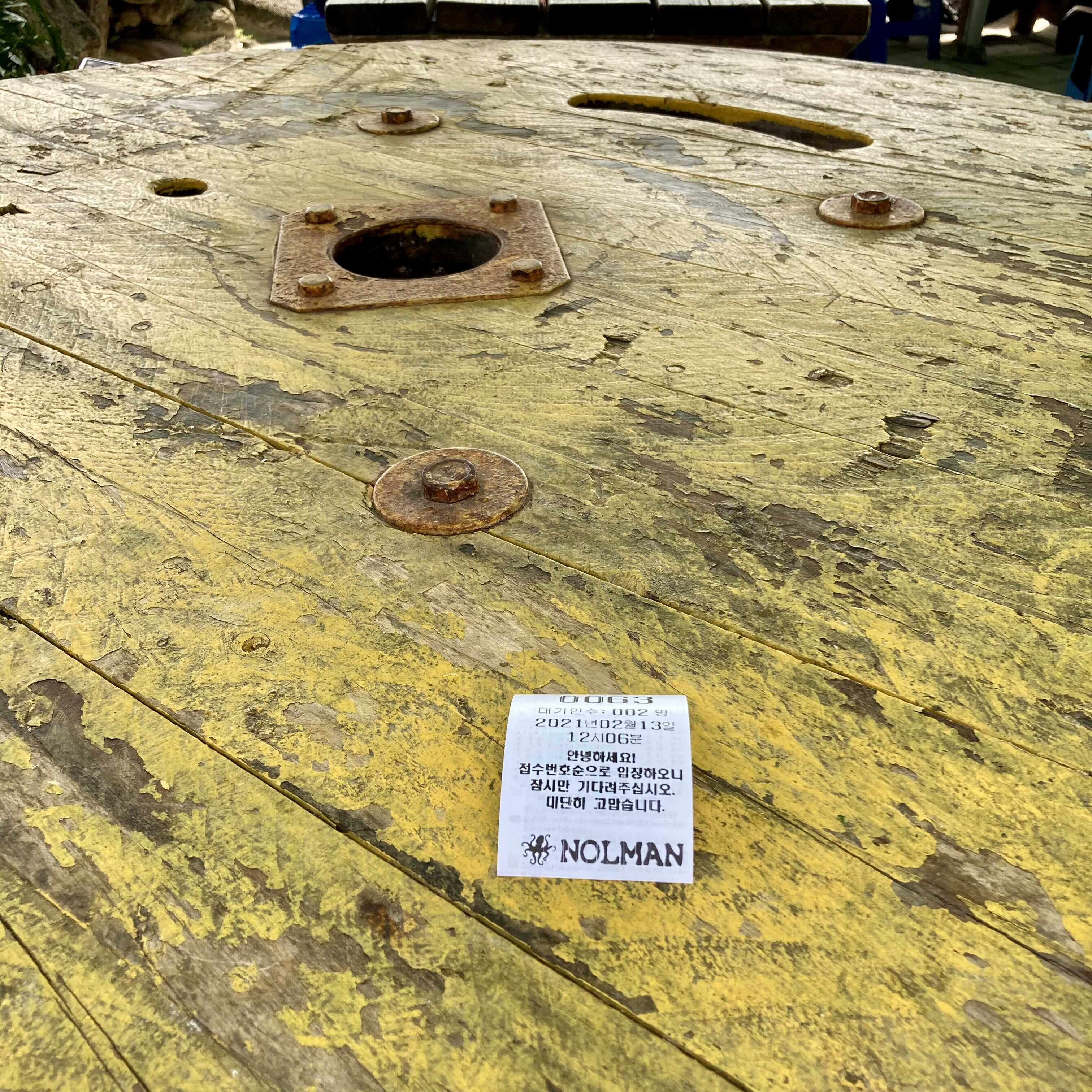 번호표를 뽑고 기다렸다. 사진에서 보이는 것처럼 테이블도 거칠고 투박한 느낌이다.