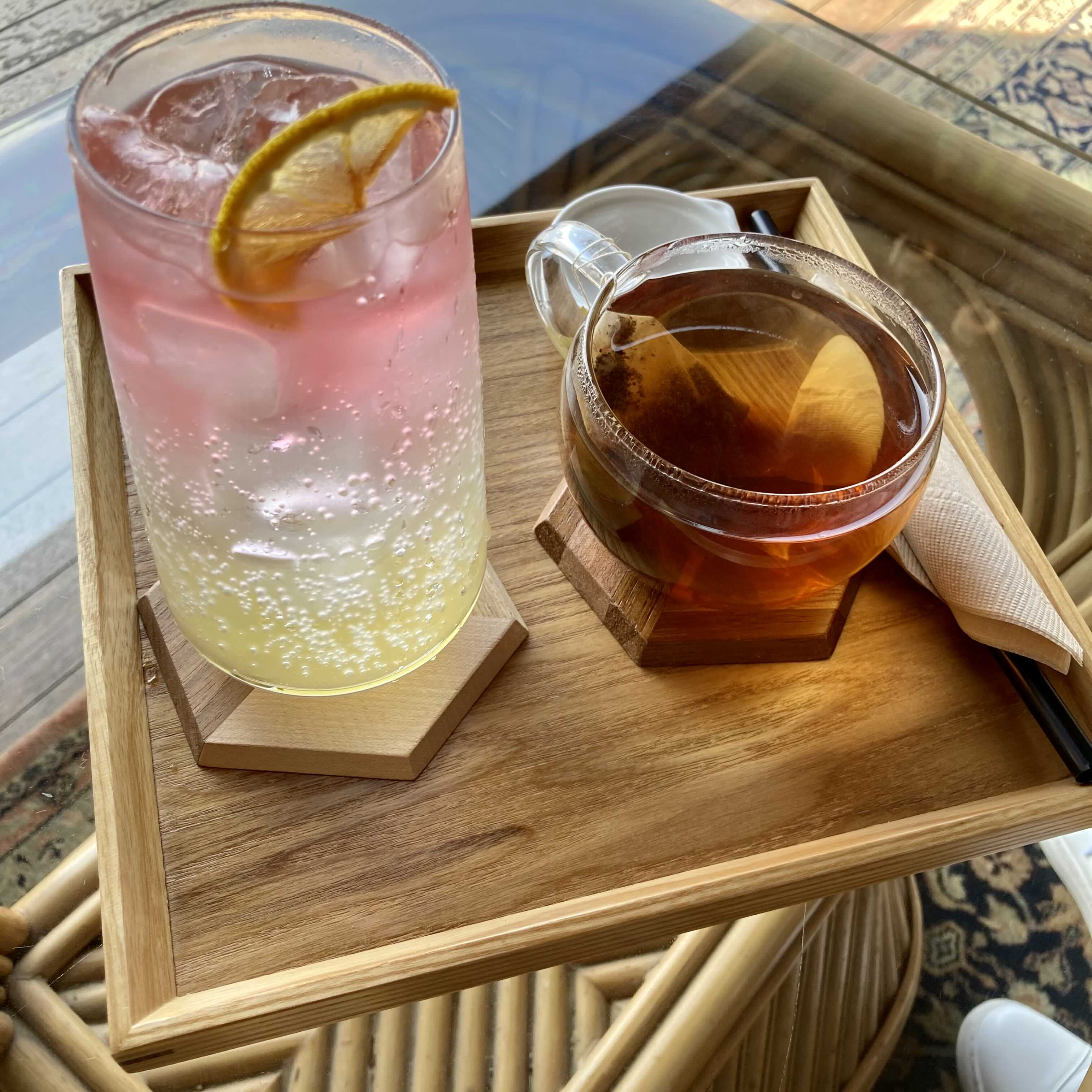 음료는 역시 애월카페거리 자리가 자리인 만큼 뷰값이 포함되어 있는 듯하다. 커피는 이미 다른 곳에서 마셨으므로 핑크레몬에이드와 얼그레이 티를 주문했다.
