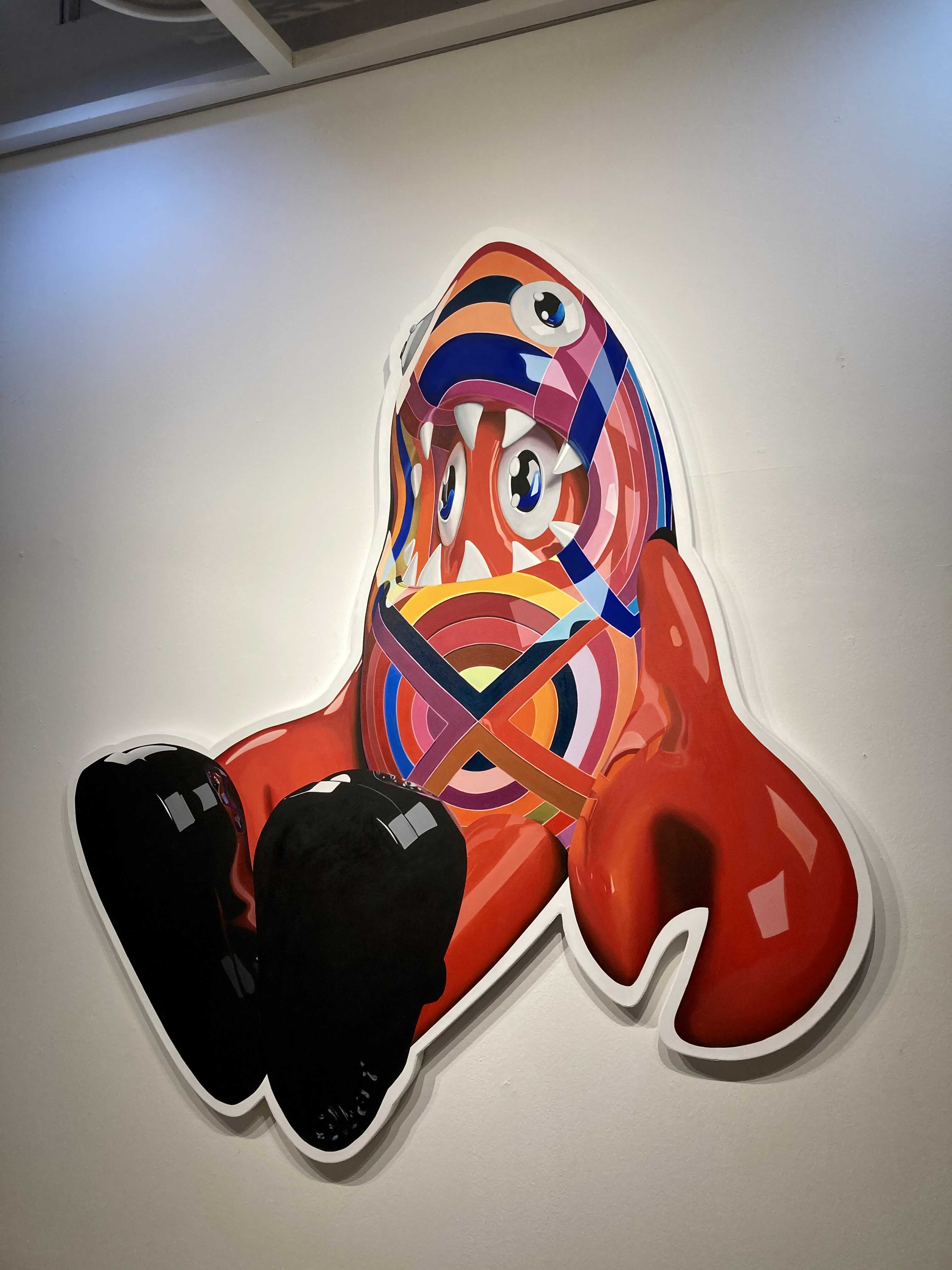 작가의 그림 속 랍스터가 자본주의를 상징하는듯한 브랜드들과 싸우는 그림들이 있었는데, 그런 상징들을 랍스터가 공격하는 모습들을 통해서 비판적인 주제를 드러내는 것 같았다.