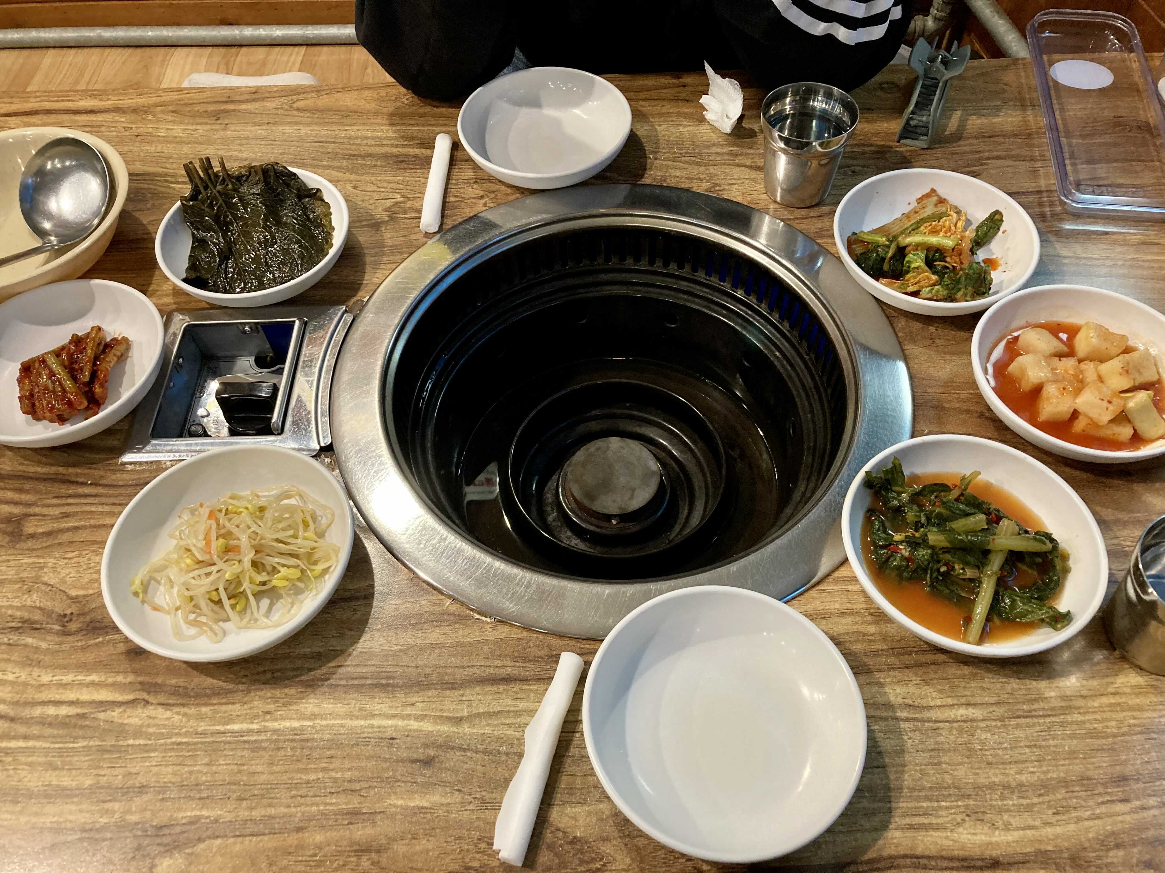 메인 메뉴 나오기 전 밑반찬 하나씩 집어먹으면